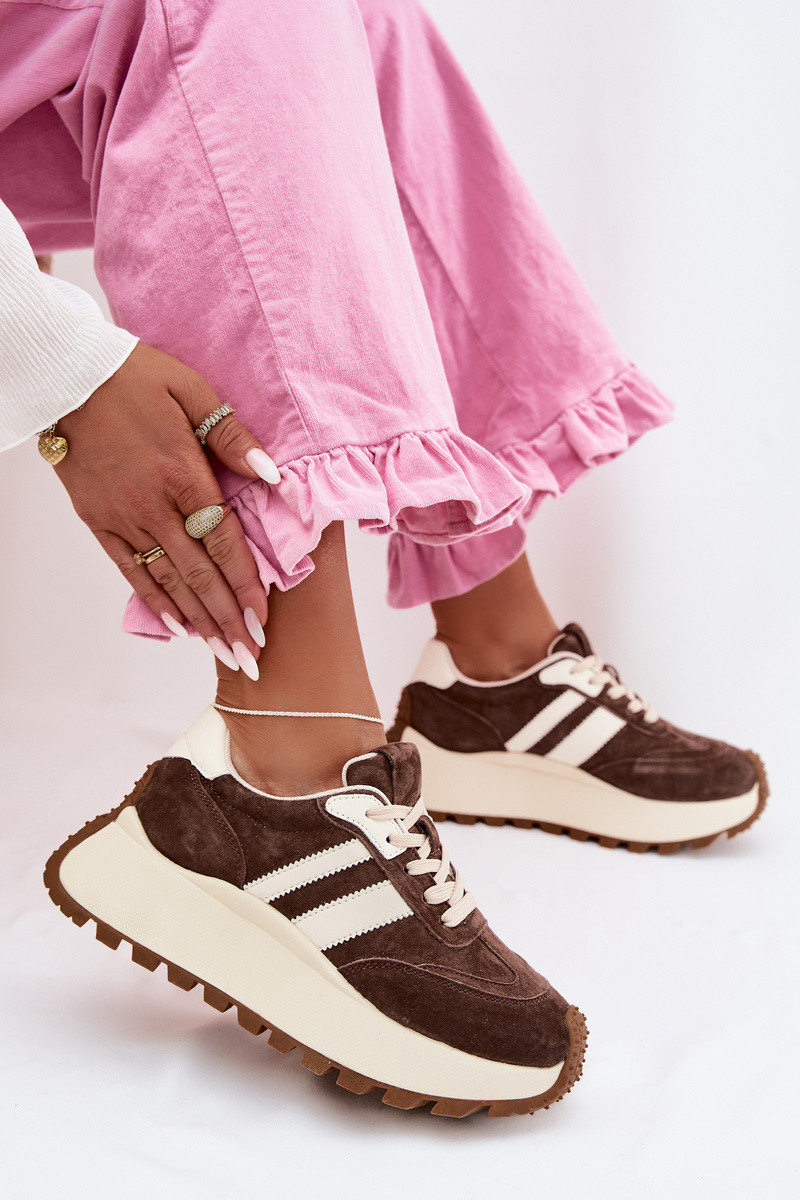 Sneakers model schoenen van suède met platform D&A GR61-5986 CzekoladoIne