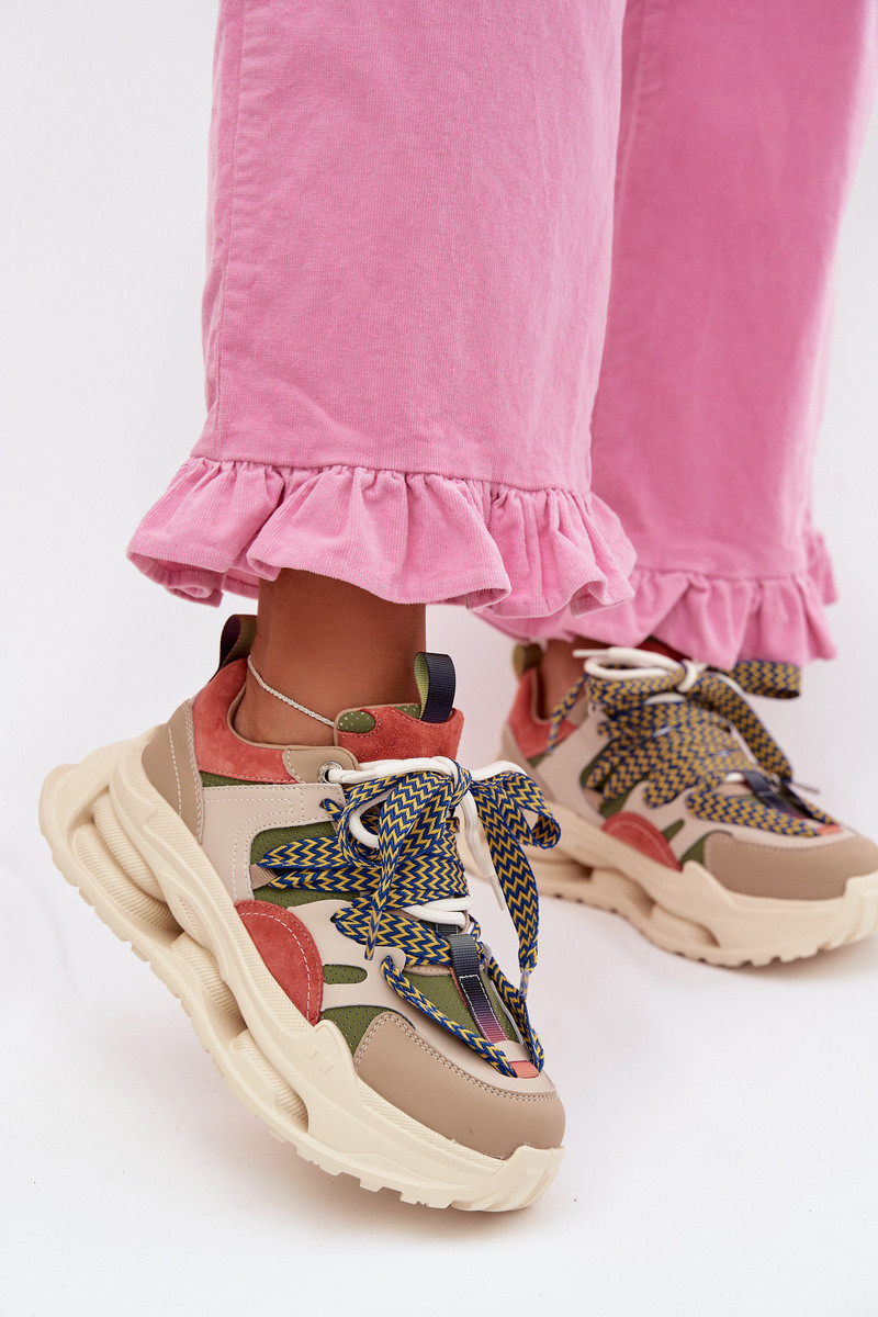 Leren dames sneakers met platform D&A CR61-3133 in zand kleur