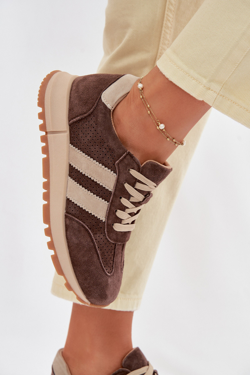 Dames sneakers van kunstleer bruine kleur