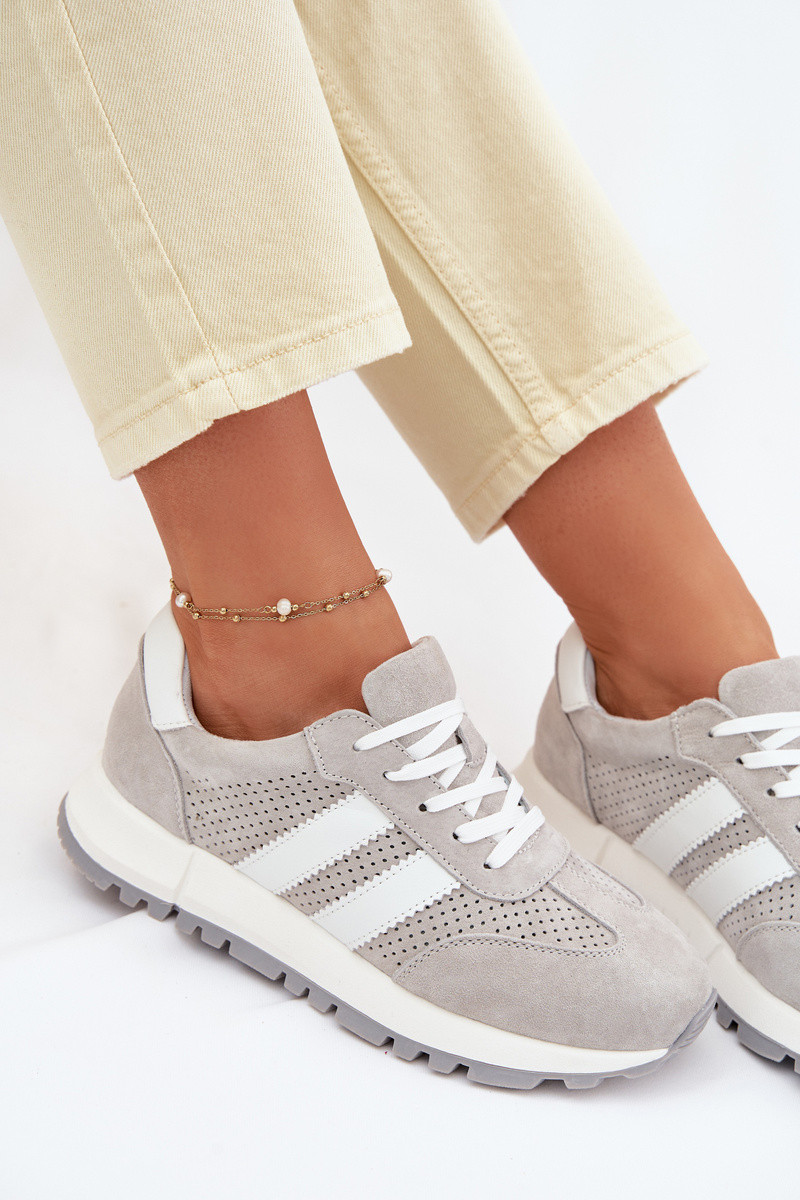 Dames sneakers van natuurlijk suède grijze kleur