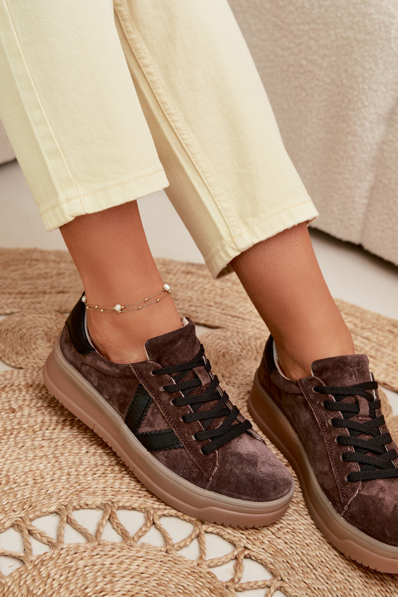 Vinceza 79597 dames sportieve schoenen van natuurlijk suède met plateau in bruin