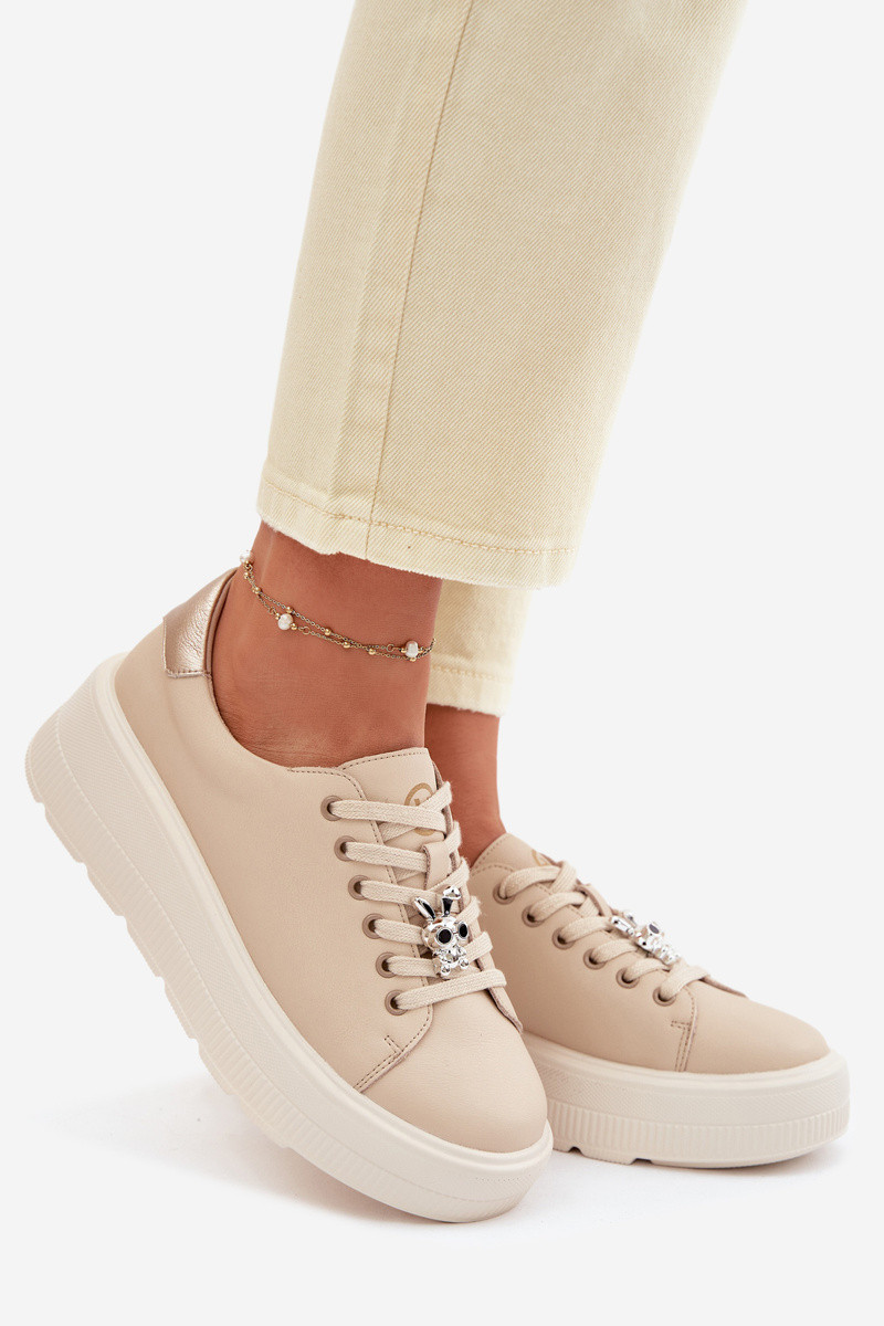 Leren dames sneakers met platform Vinceza 39973 zandkleur