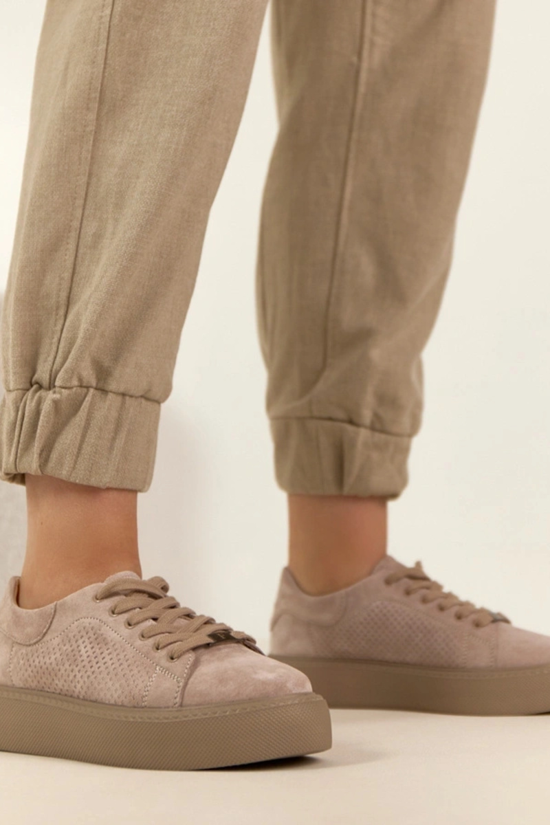 Champagne kleurige dames sneakers met satijnen veters Madres