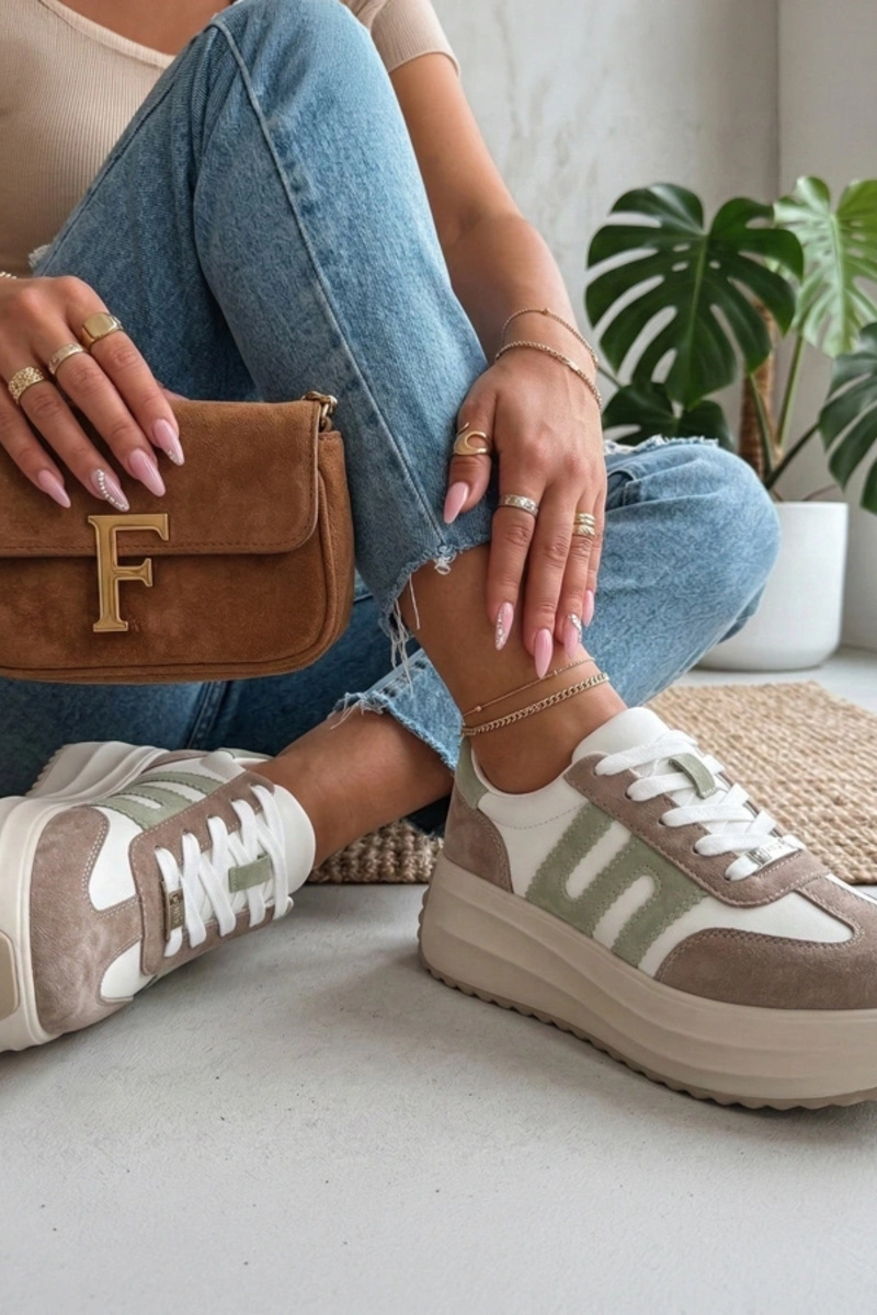 Champagne kleurige dames sneakers met satijnen veters Madres