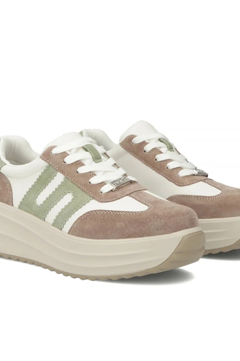 Zandkleurige leren schoenen op platform Filippo