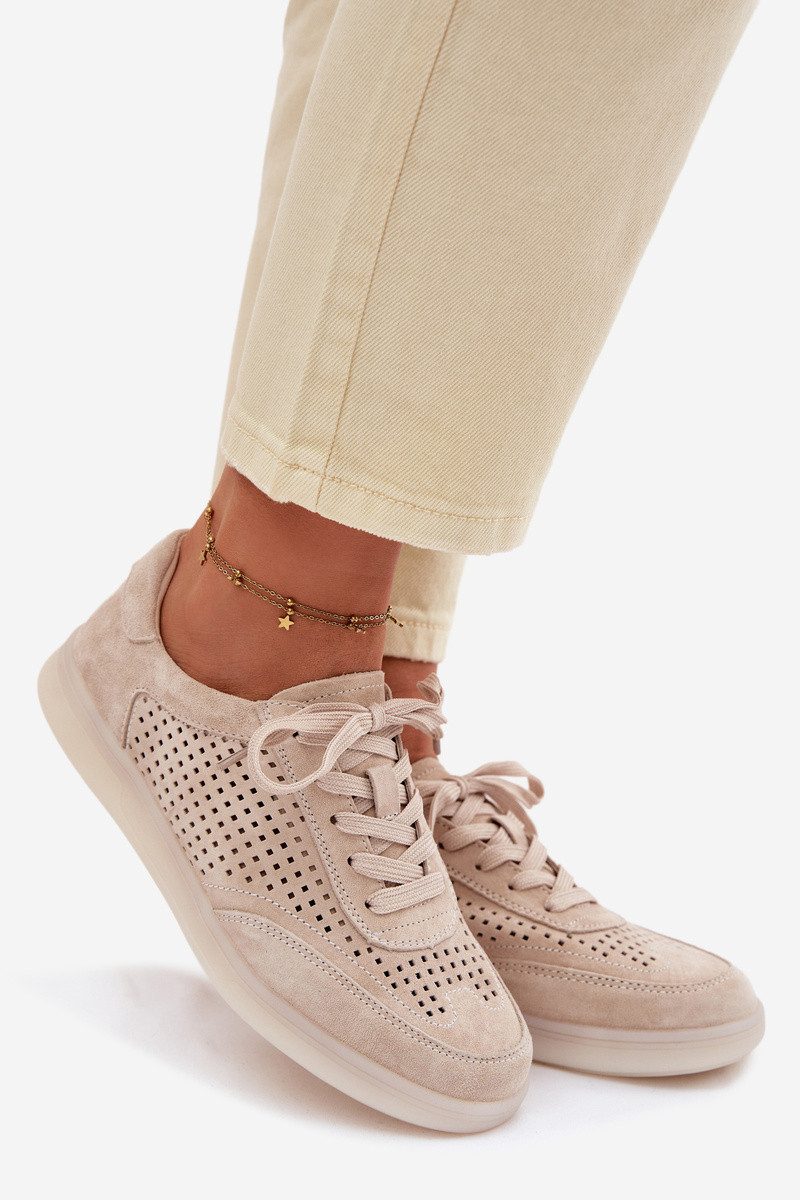 Leer van suède Sneakers model schoenen Dames met elementen van opengeInerkt beige Almora