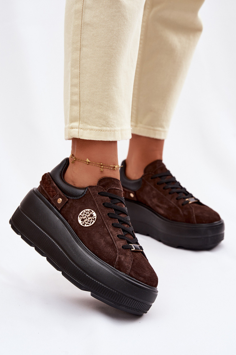 Suède sneakers voor dames met platform D&A LR61-7094 chocoladekleurig