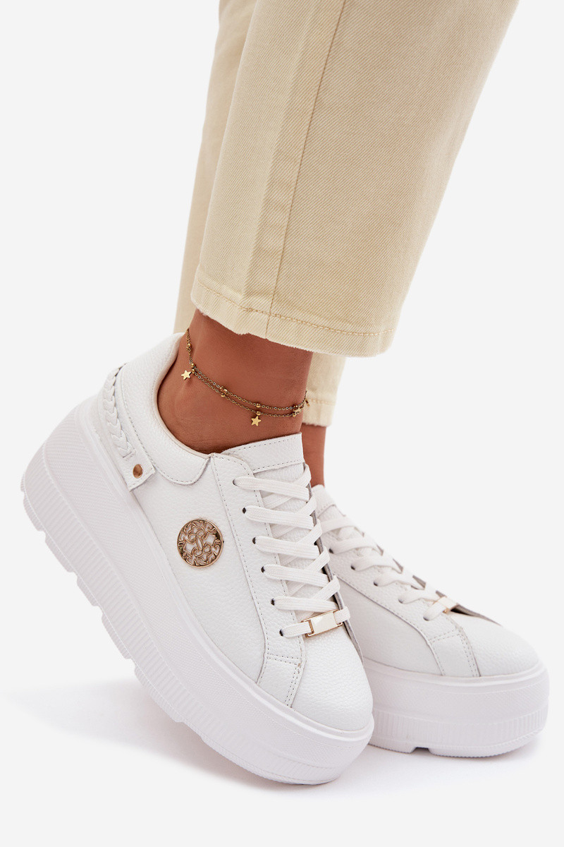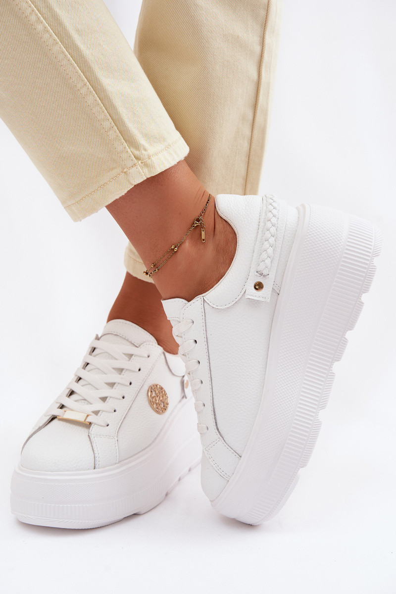 Leren sneakers voor dames met platform D&A LR61-7095 wit