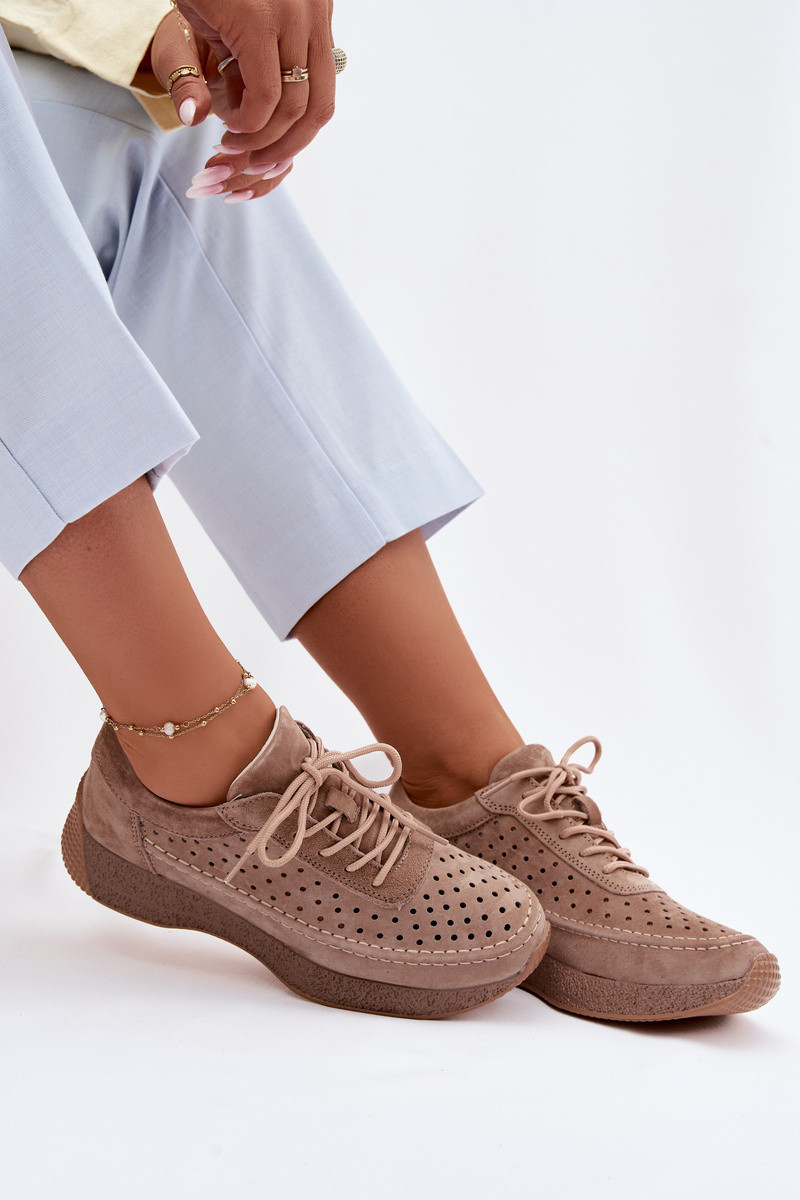 Leer schoenen Sneakers model schoenen Dames met elementen van opengeInerkt Sergio Leone SP-013 bruine kleur