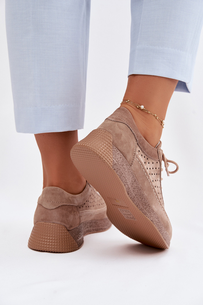 Leren sneakers model dames met perforatie elementen Sergio Leone SP-013 bruine kleur