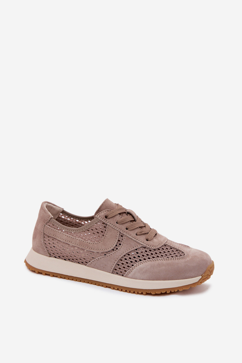 met elementen van opengeInerkt Sneakers model schoenen Dames van suède beige Gelina