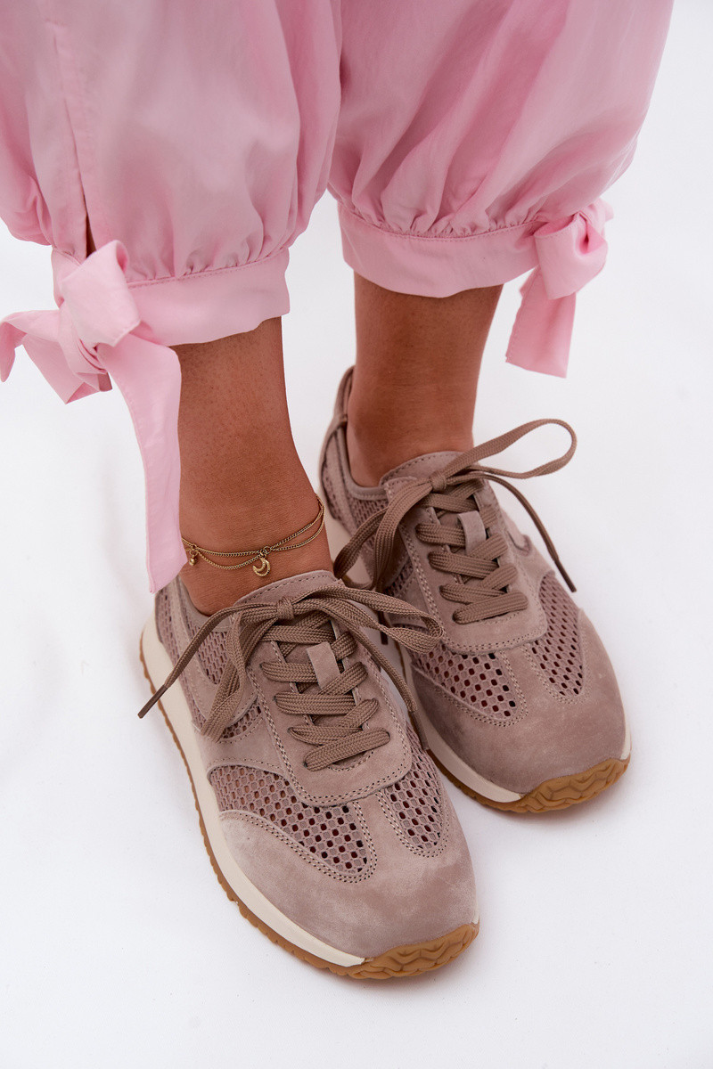 EVENTOmet elementen van opengeInerkt Sneakers model schoenen Dames van suède beige Gelina
