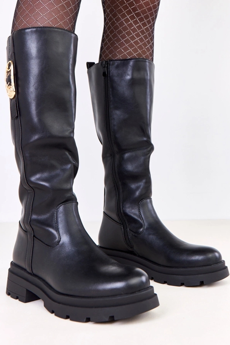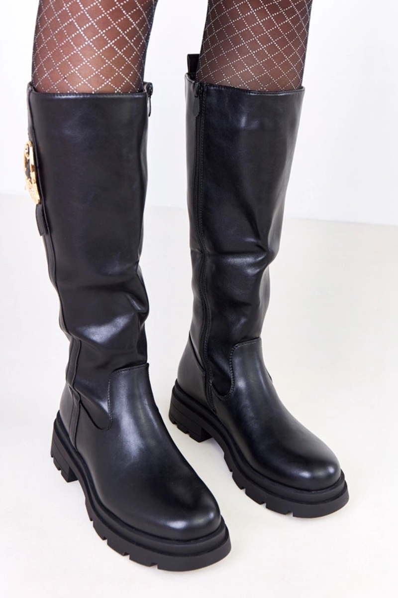 Zwarte lange laarzen van kunstleer met gouden versiering Meliros