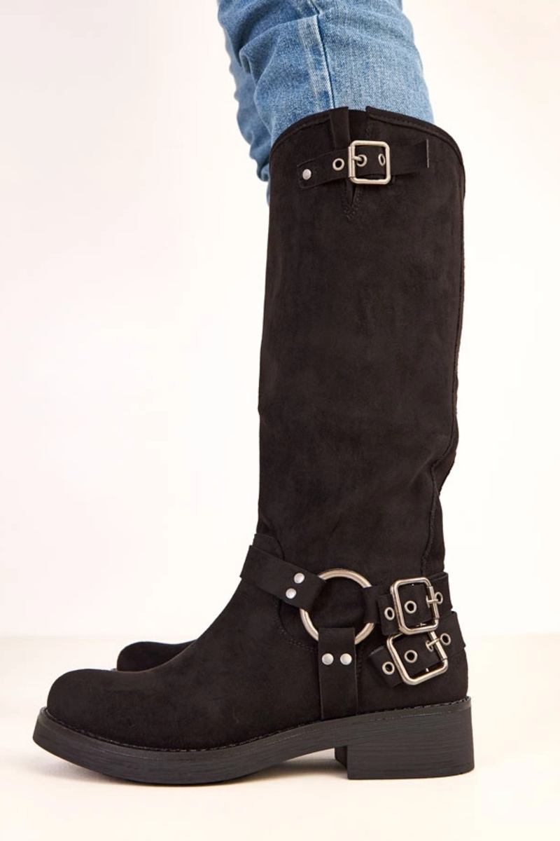 Zwarte hoge laarzen met decoratieve gespen Merena