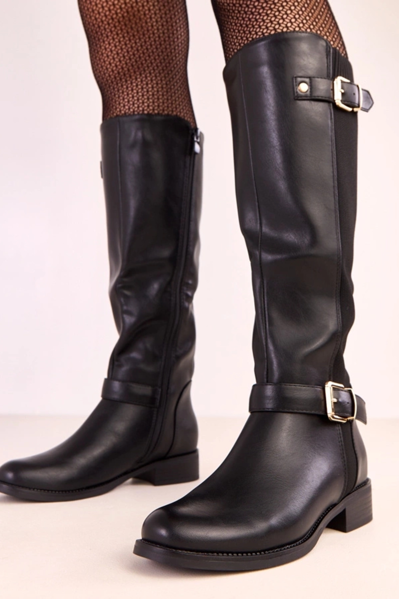 Zwarte lange laarzen met elastische inzet Karia