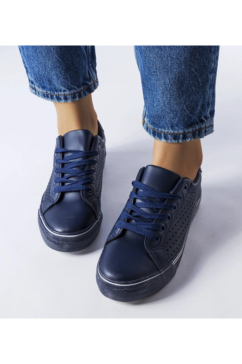 Dames mocassins met ajourdetails en ornamenten in donkerblauw Kaydance