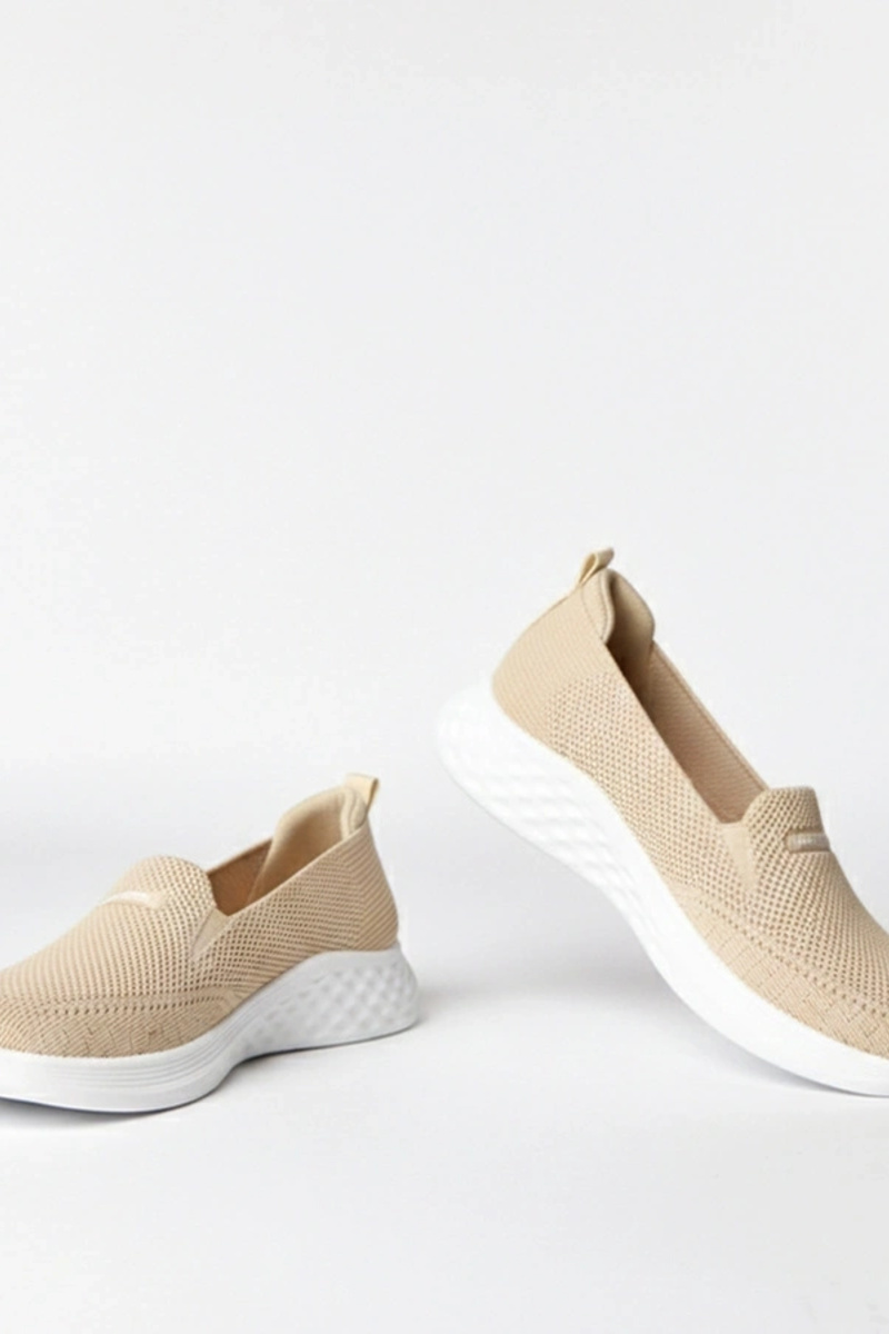 Zandkleurige instap sneakers van stof Zoe