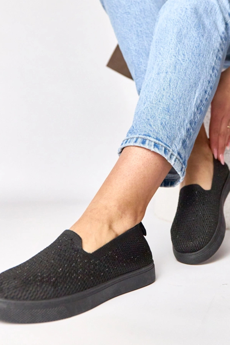 Zwarte instap sneakers van stof met zirconia Gabrielle