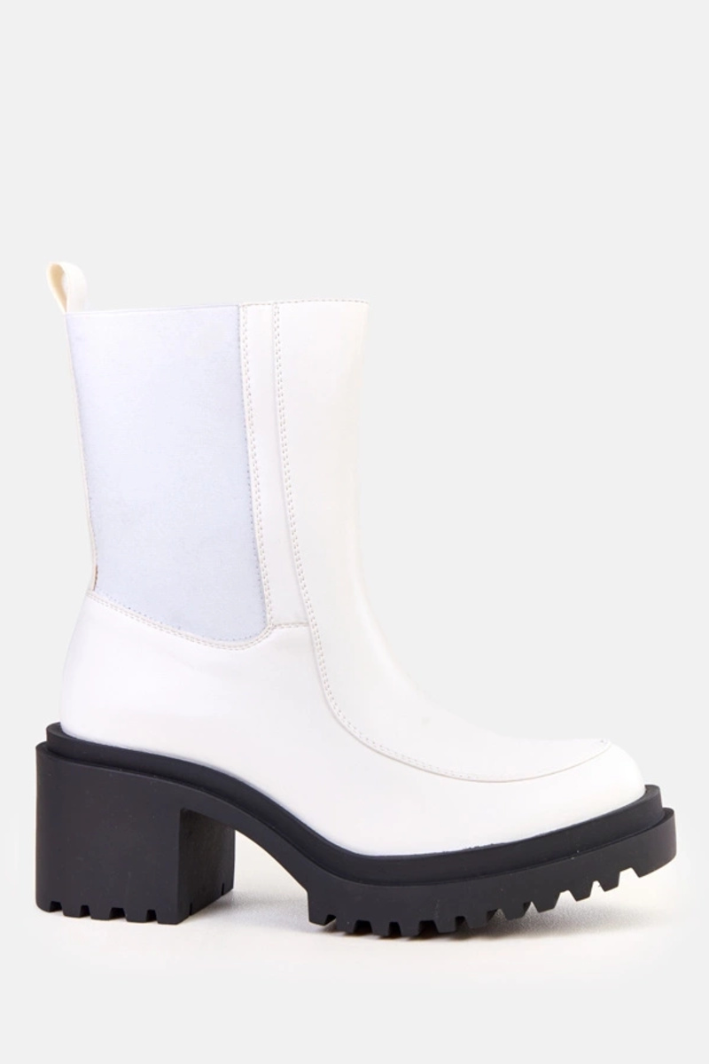 Witte enkellaarsjes op een blokhak met elastische inzet Jarley