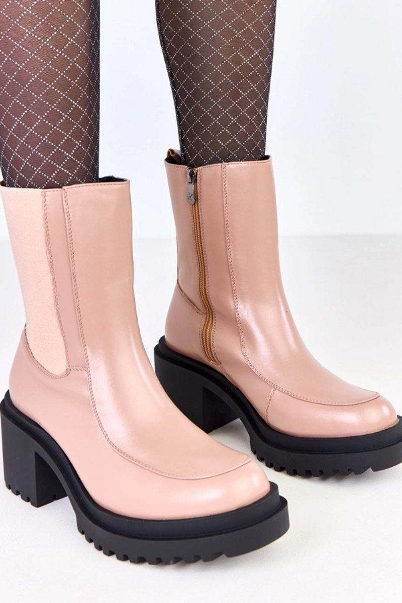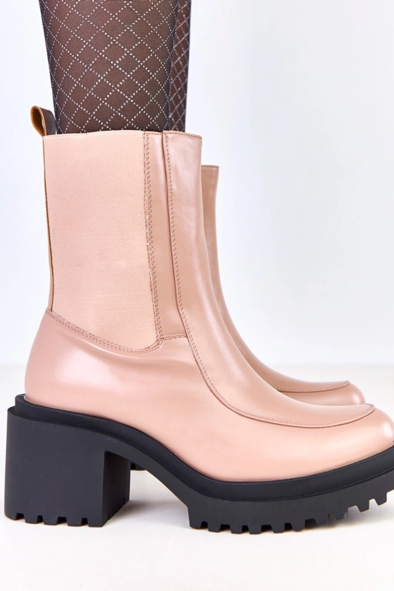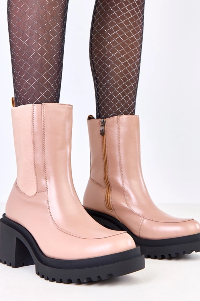 Zandkleurige laarzen op hak met elastisch inzetstuk Jarley