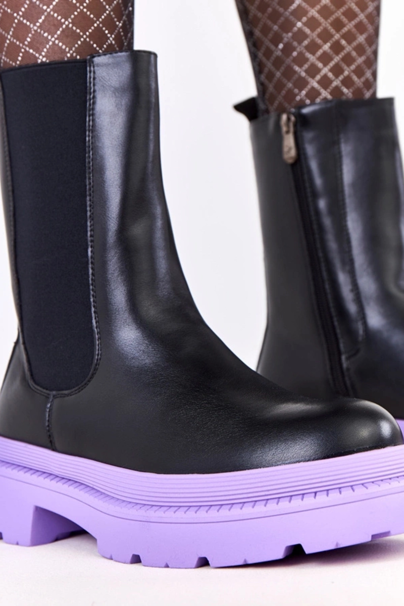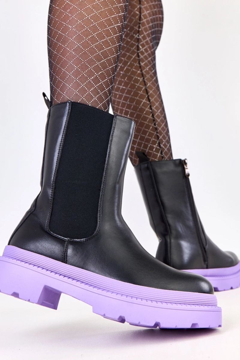 Zwarte laarzen op paarse zool Fortley