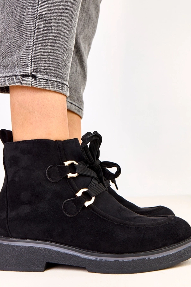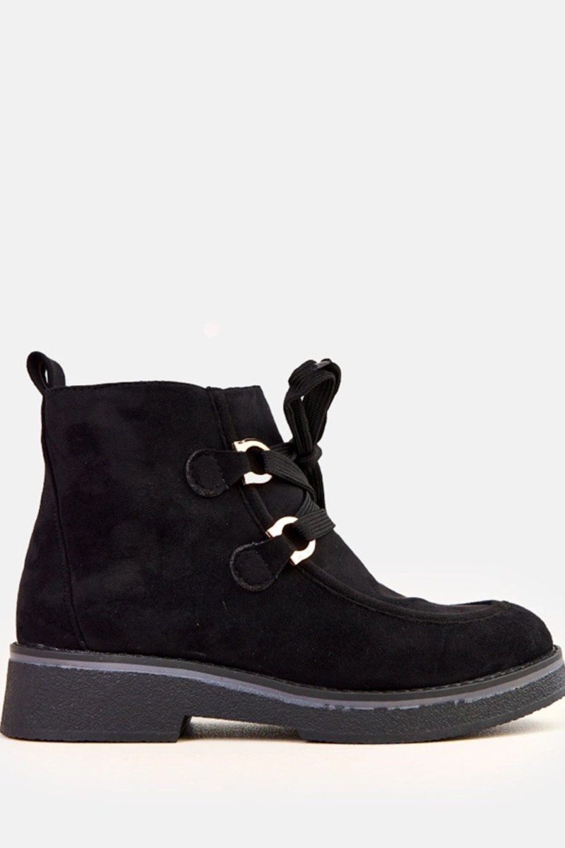 Zwarte warme enkellaarsjes met decoratieve veters, Katrins