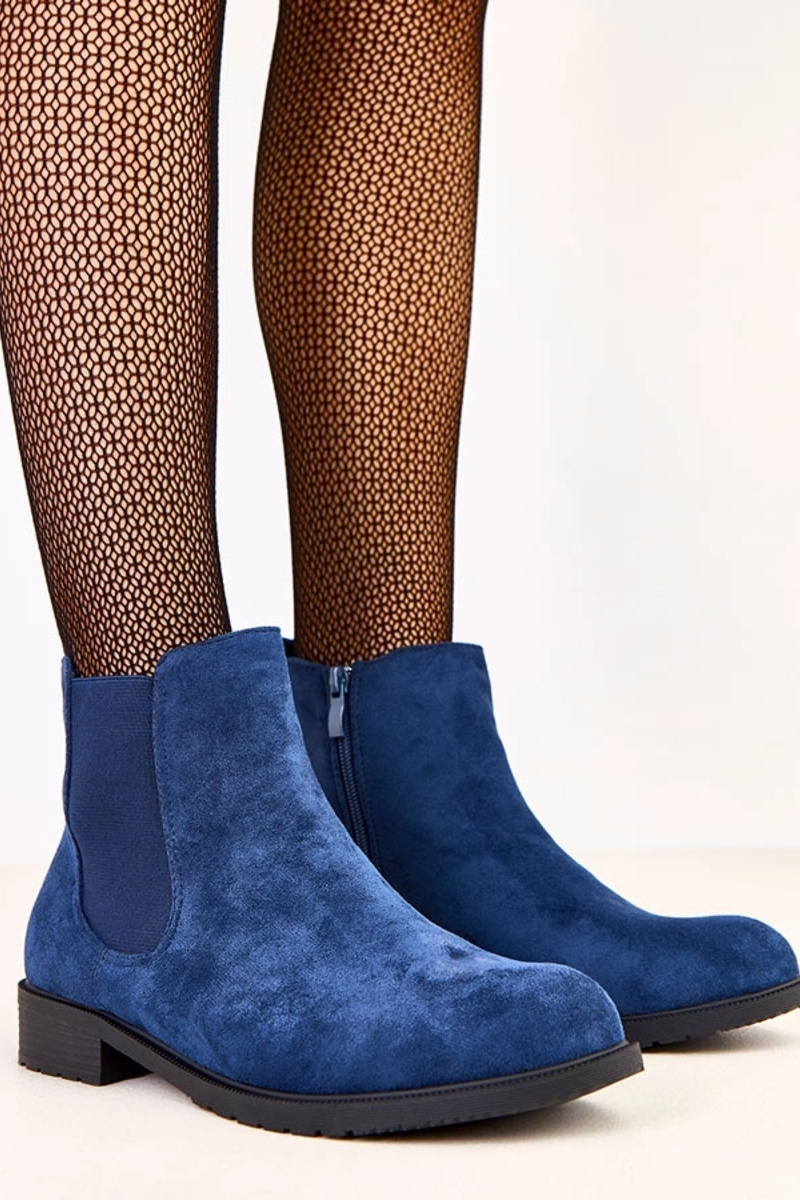 Donkerblauwe platte enkellaarsjes met elastische inzet Salomi