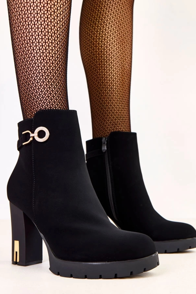 Zwarte elegante enkellaarsjes op een blokhak met versiering Verona