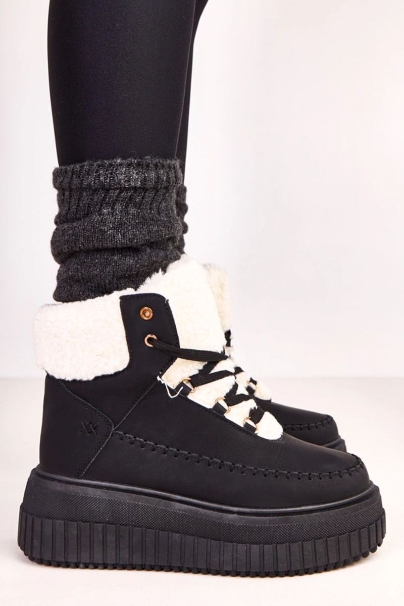 Zwarte warme sportieve enkellaarsjes op platform Lorraine