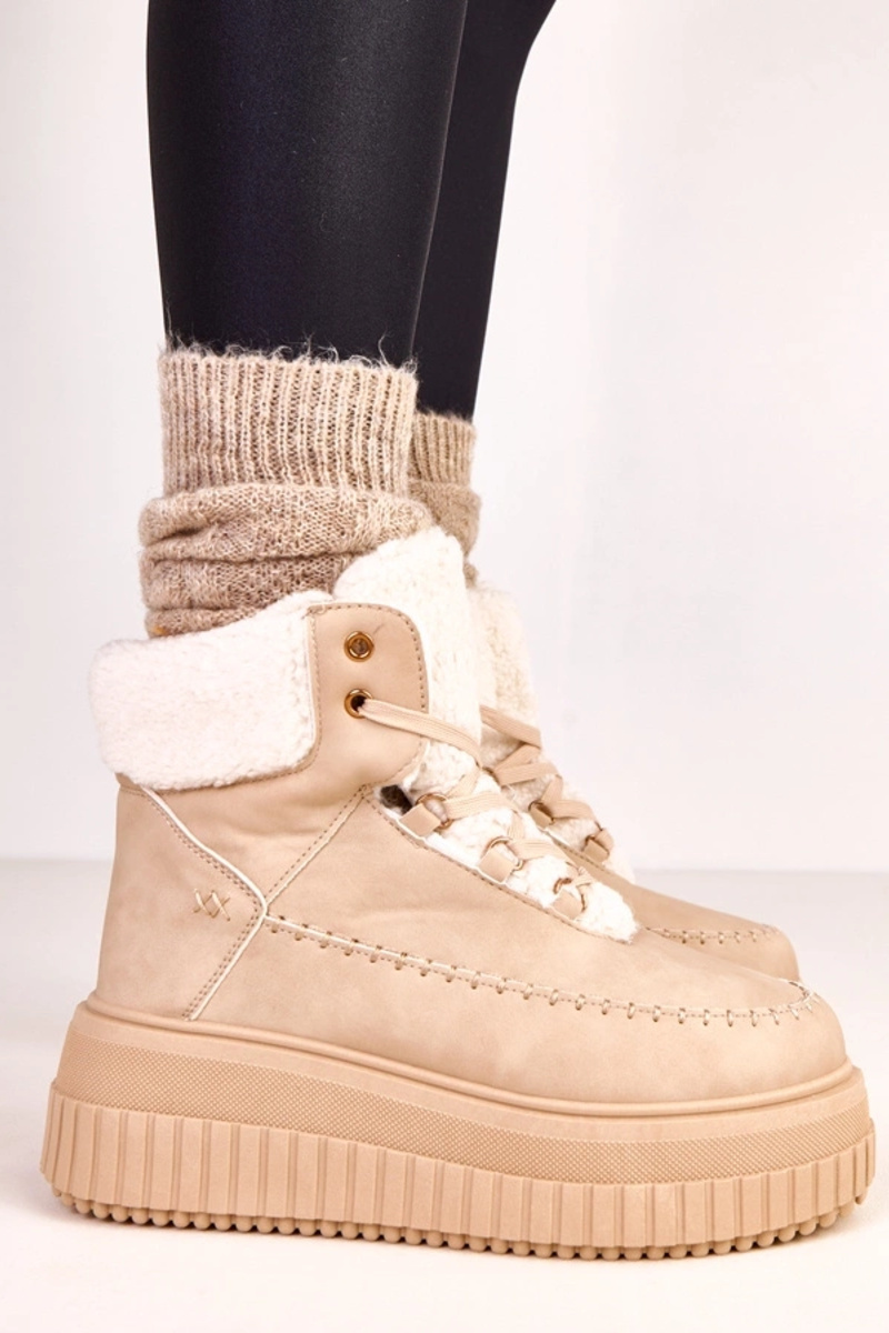 Bruine warme sportieve enkellaarsjes op platform Lorraine