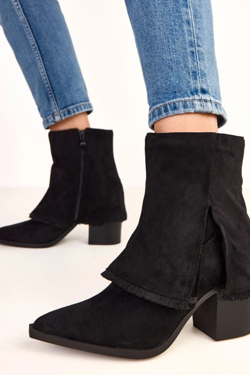 Zwarte enkellaarsjes met hak en omgeslagen schacht Felicia