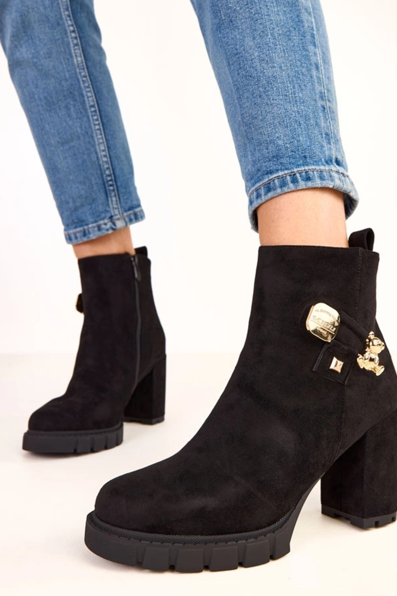 Zwarte enkellaarsjes met gouden berenversiering Naste