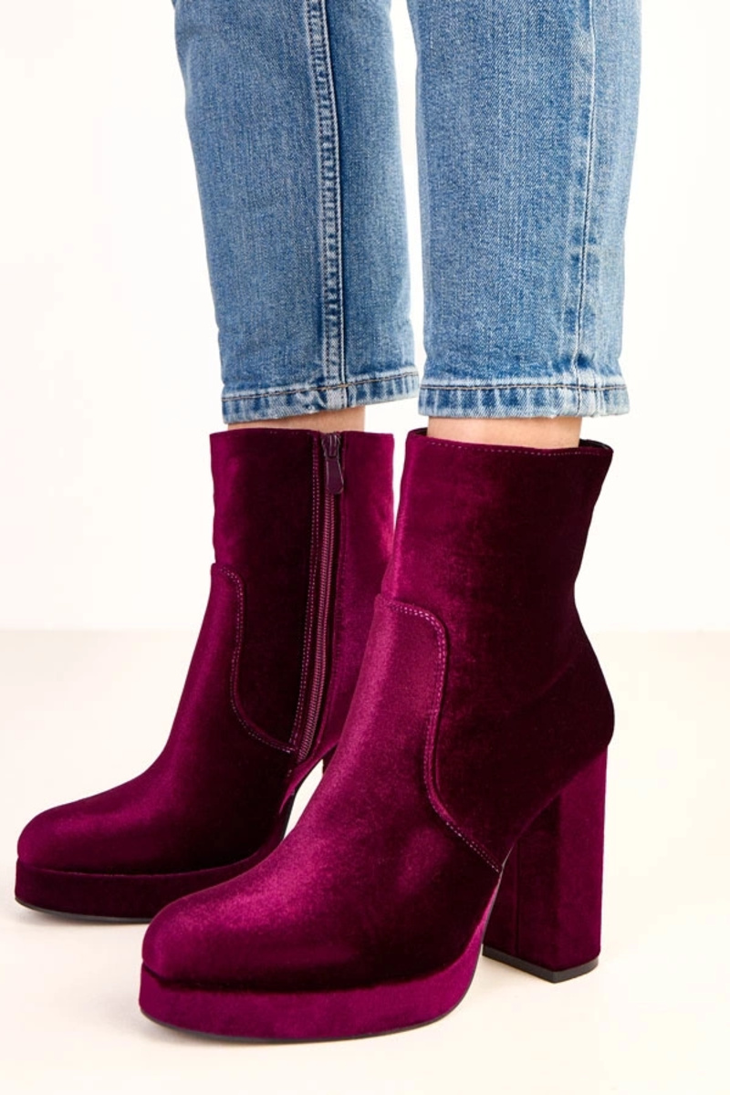 Paarse enkellaarsjes op een dikke hak met glanzende afwerking Asanda
