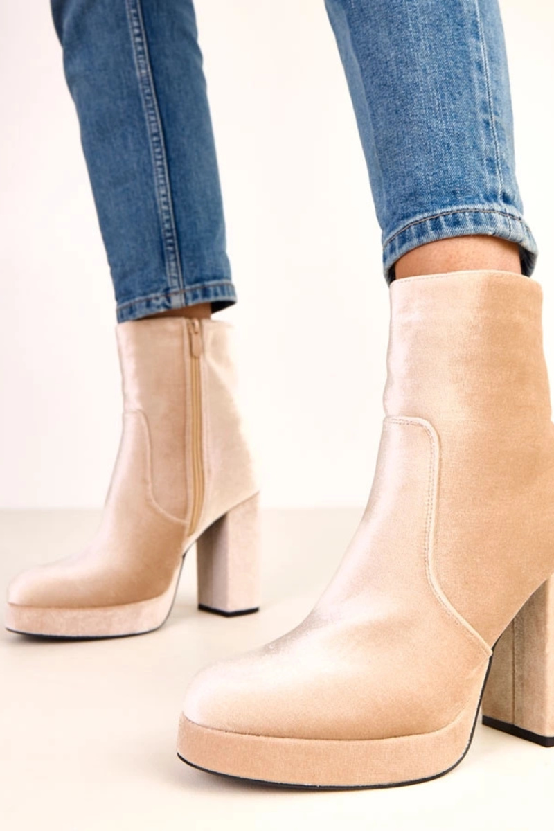 Beige enkellaarsjes op een dikke hak met glanzende afwerking Asanda