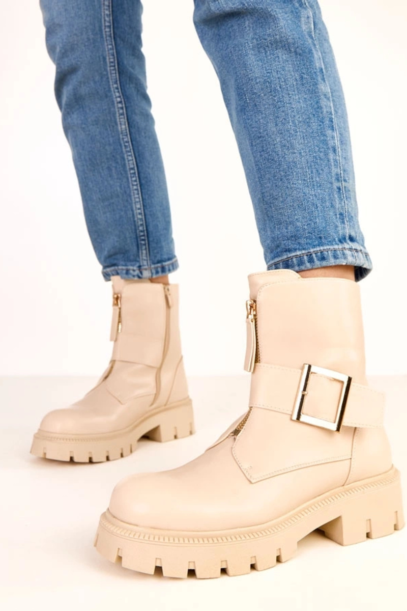 Beige enkellaarsjes op platform met decoratieve gesp Dera