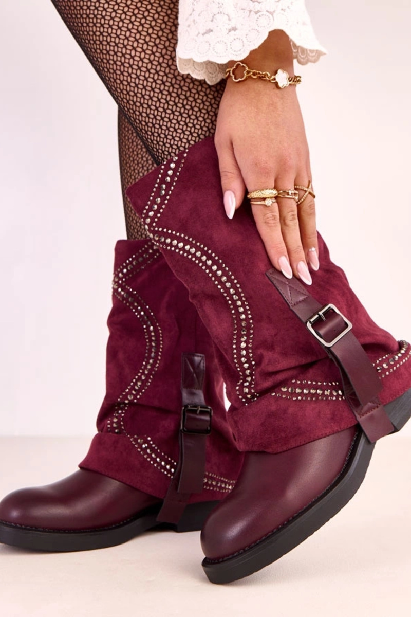 Bordeaux kleurige enkellaarsjes met open schacht, versierd met zirconia Ginny