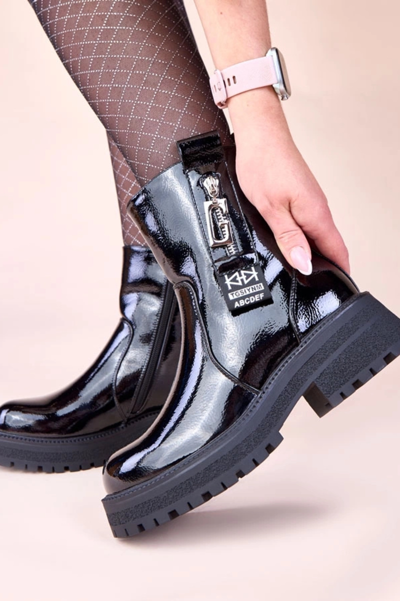 Zwarte lak enkellaarsjes met decoratieve rits Taraya