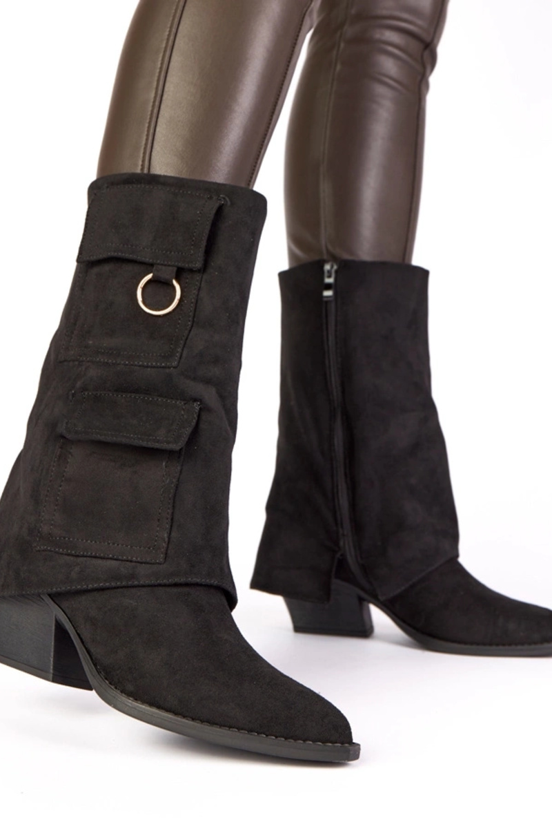 Zwarte enkellaarsjes op een hak met zakjes Nadiia