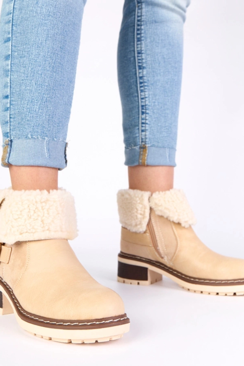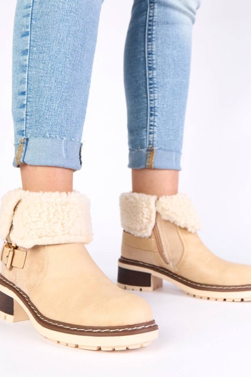 Zandkleurige enkellaarsjes op hak met omklapbare schacht Olga