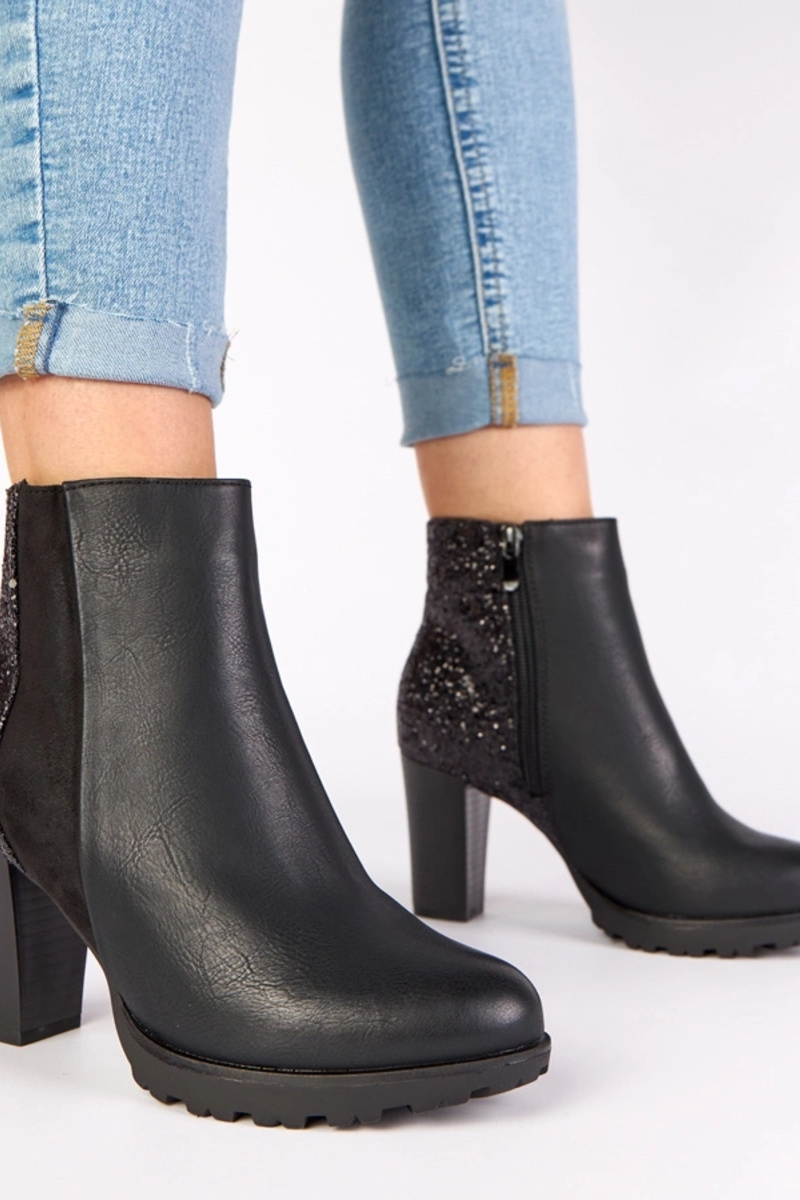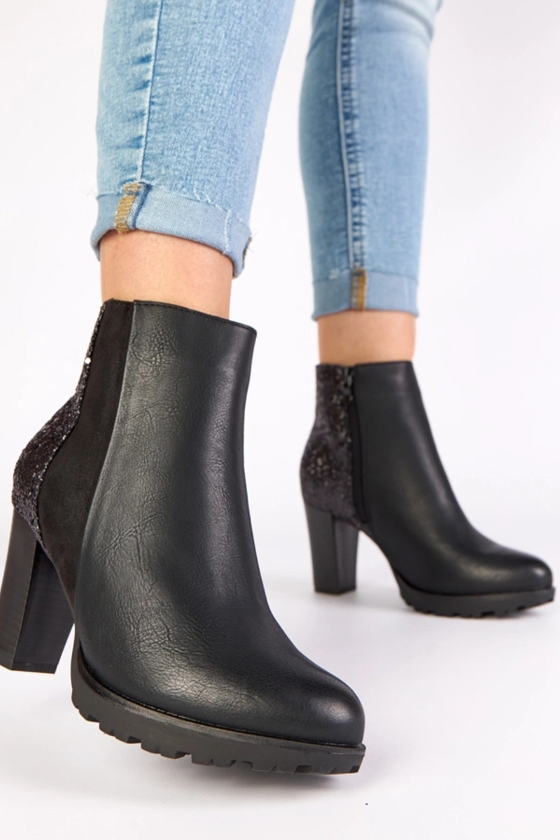 Zwarte enkellaarsjes op een hak met glanzende achterkant Ambre