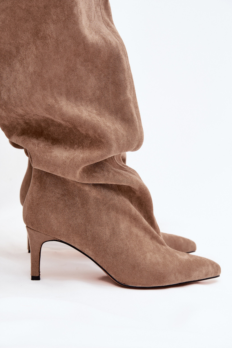 Damesknielaarzen met dunne hakken, instapmodel, zandkleur Tai turivilla