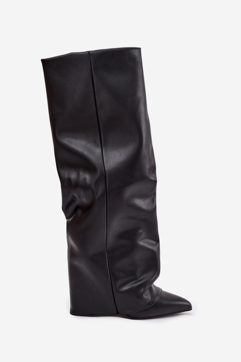 Verwarmde dameslangenlaarzen met ingebouwde cholewa en hakken, zwarte kleur, Elivira