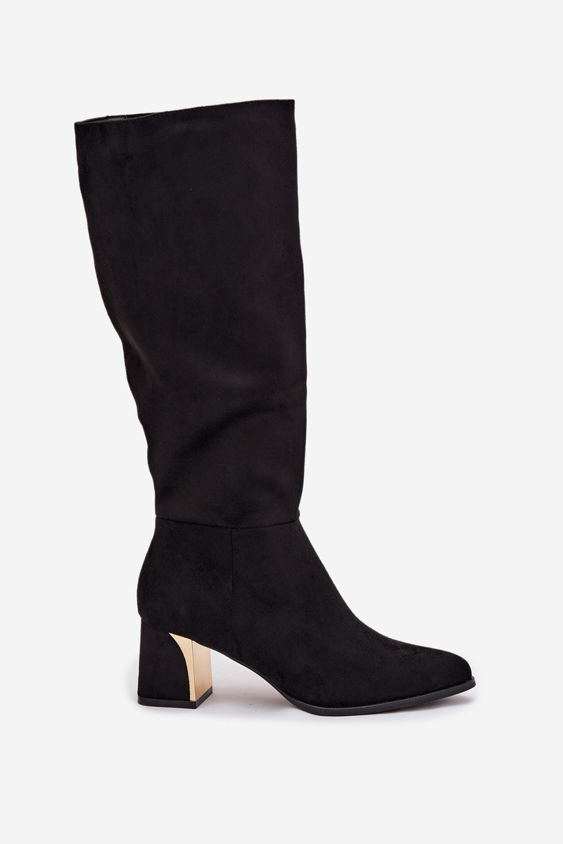 Dames lange laarzen met hakken en gouden elementen, zwart, Nivarae