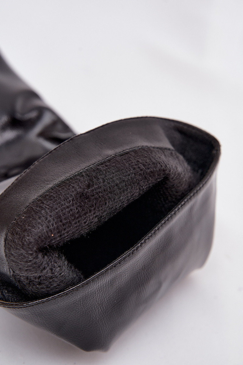 Lakken dames laarzen met een lage hak, zwarte kleur Mireva