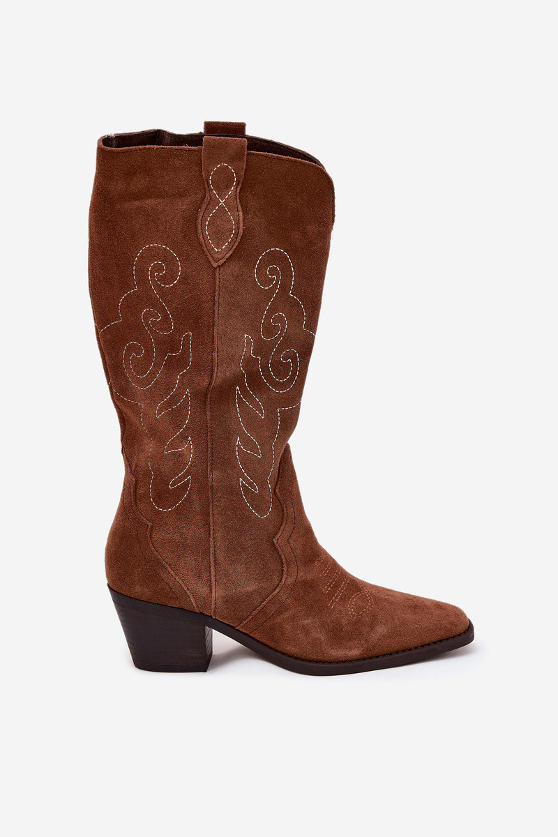 Cowboystijl bruine suède lange laarzen voor dames met hakken „Karira"