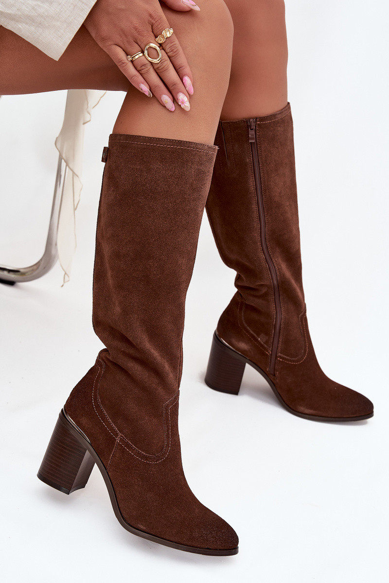 Dames lange laarzen van natuurlijk suede gevoerd Sergio Leone KZ25668-S bruine kleur