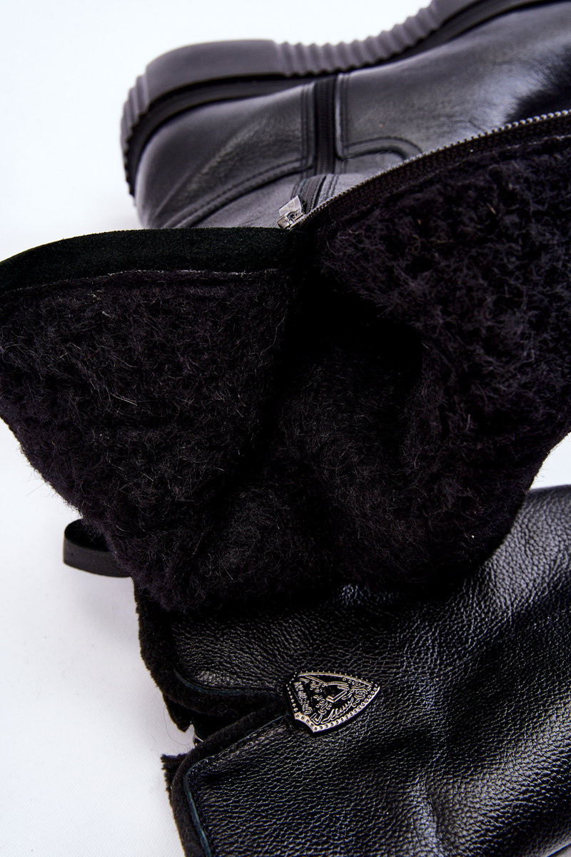 Zazoo 70121 leren dames lange laarzen met wol, zwarte kleur