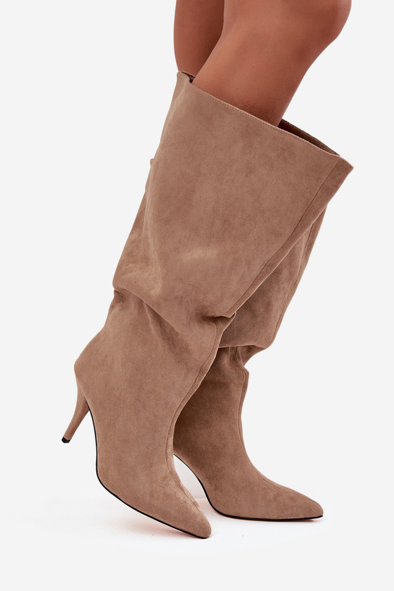 Persistent model dameslaarzen met dunne hakkenvan eco-suèdeu beige Noretta