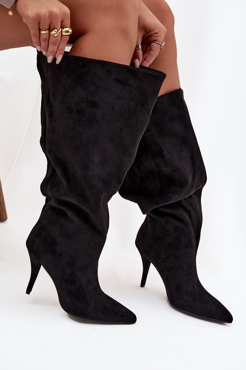 Instap dames lange laarzen met dunne hakken van kunstsuède in zwart Noretta