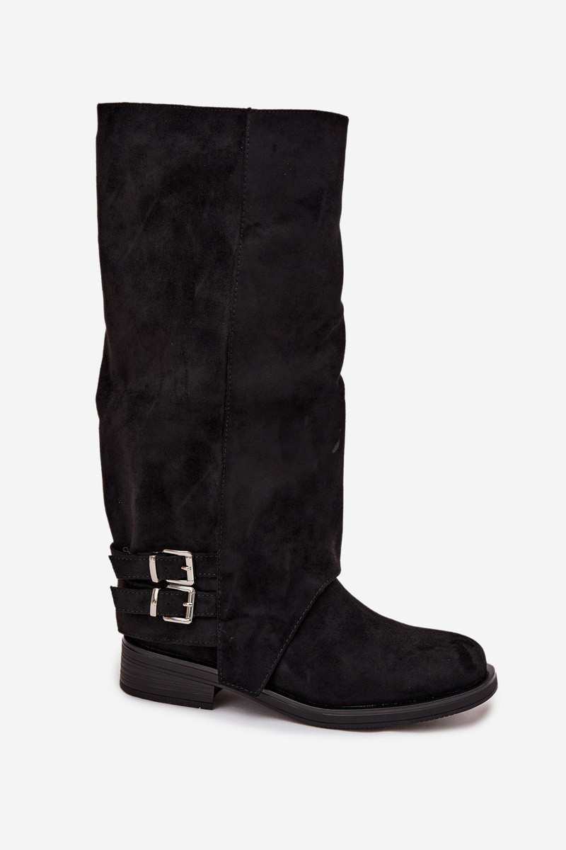 Gevoerde dames lange laarzen met gespen in zwart Umbria